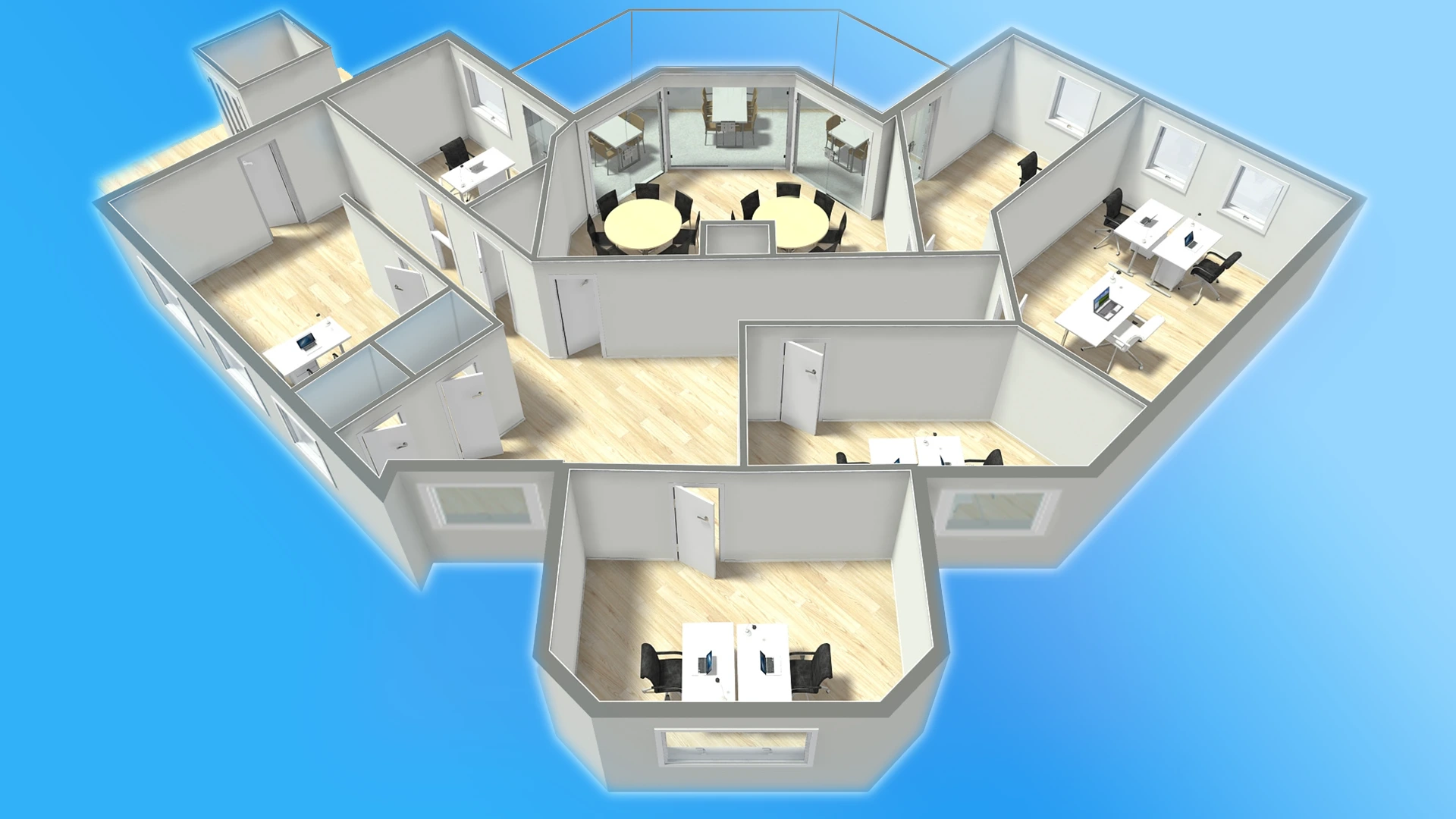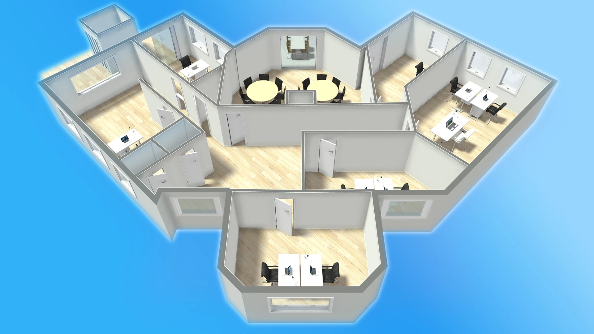 Vom Grundriss bis zum kleinsten Detail — steuern Sie jedes Stockwerk mit einer Berührung